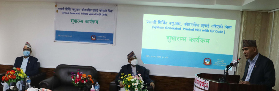 प्रणाली सिर्जित क्यू.आर. कोड सहित छपाई गरिएको भिसा शुभारम्भ कार्यक्रम