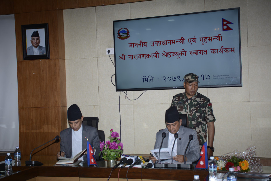 मा. उपप्रधानमन्त्री एवम् गृह मन्त्री नारायणकाजी श्रेष्ठज्यूको स्वागत कार्यक्रम-चैत्र १७,२०७९