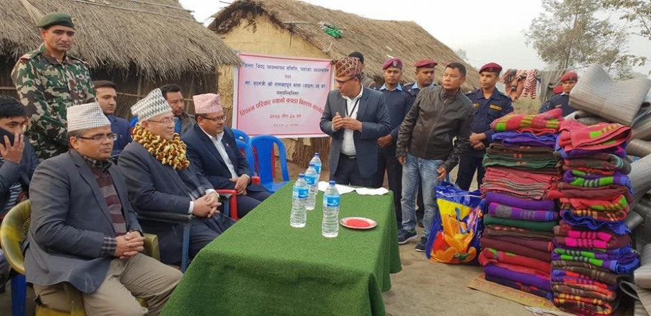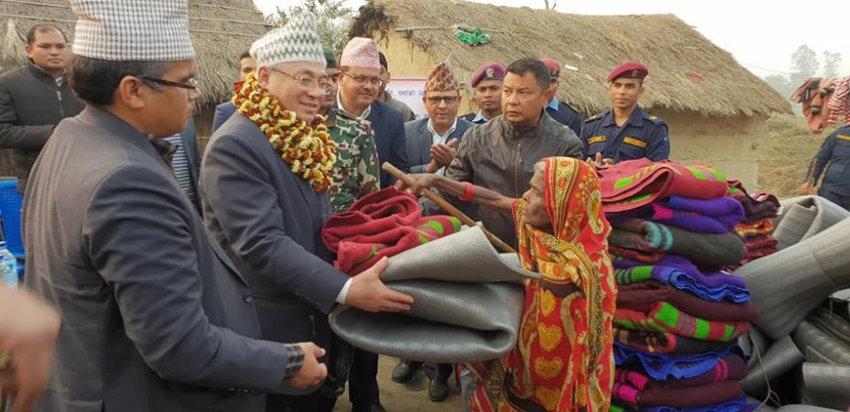 गृहमन्त्री राम वहादुर थापा 'वादल' ज्यूबाट जाडोको कपडा वितरण