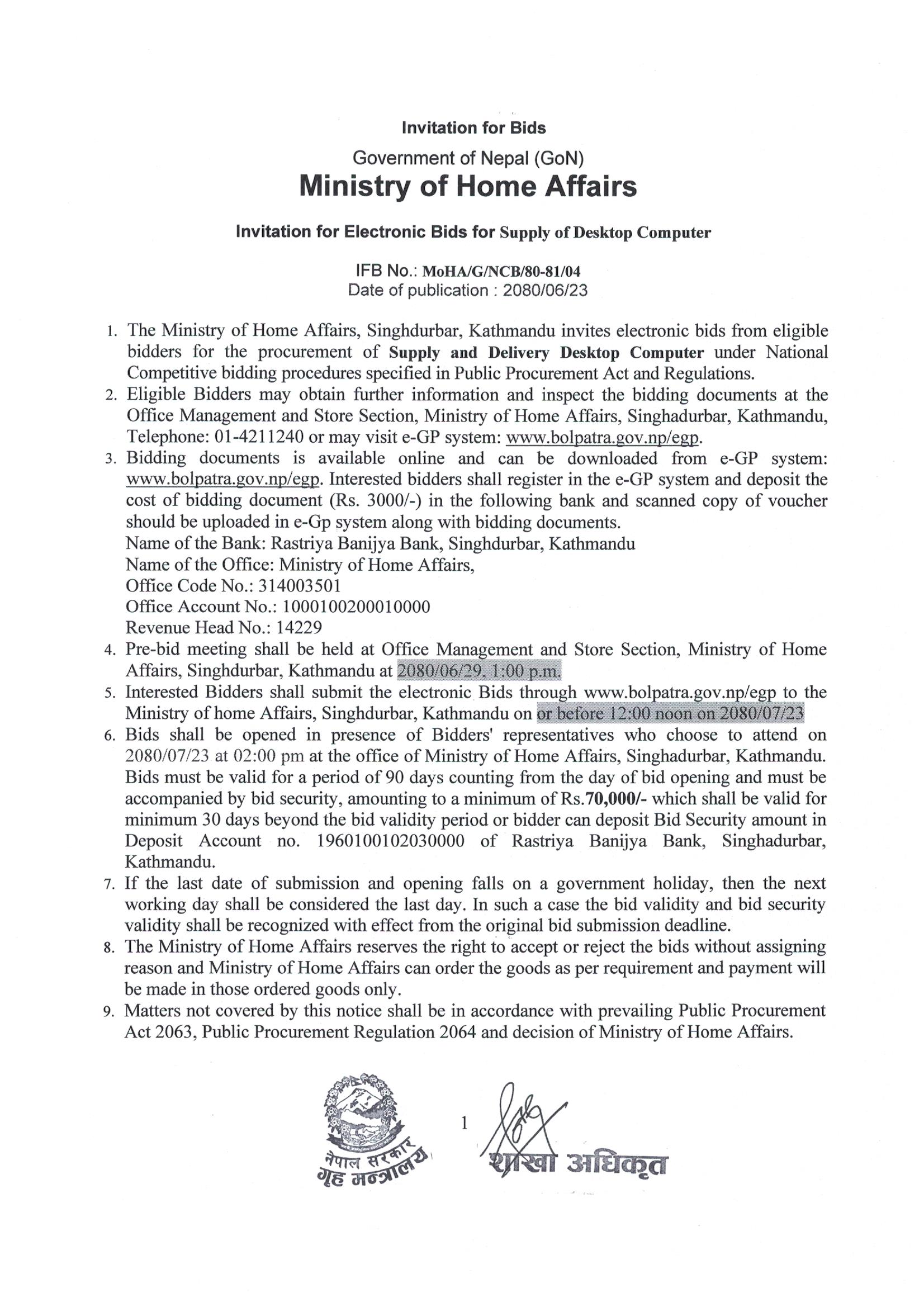 Desktop Computer खरिद सम्बन्धी बोलपत्र आव्हानको सूचना