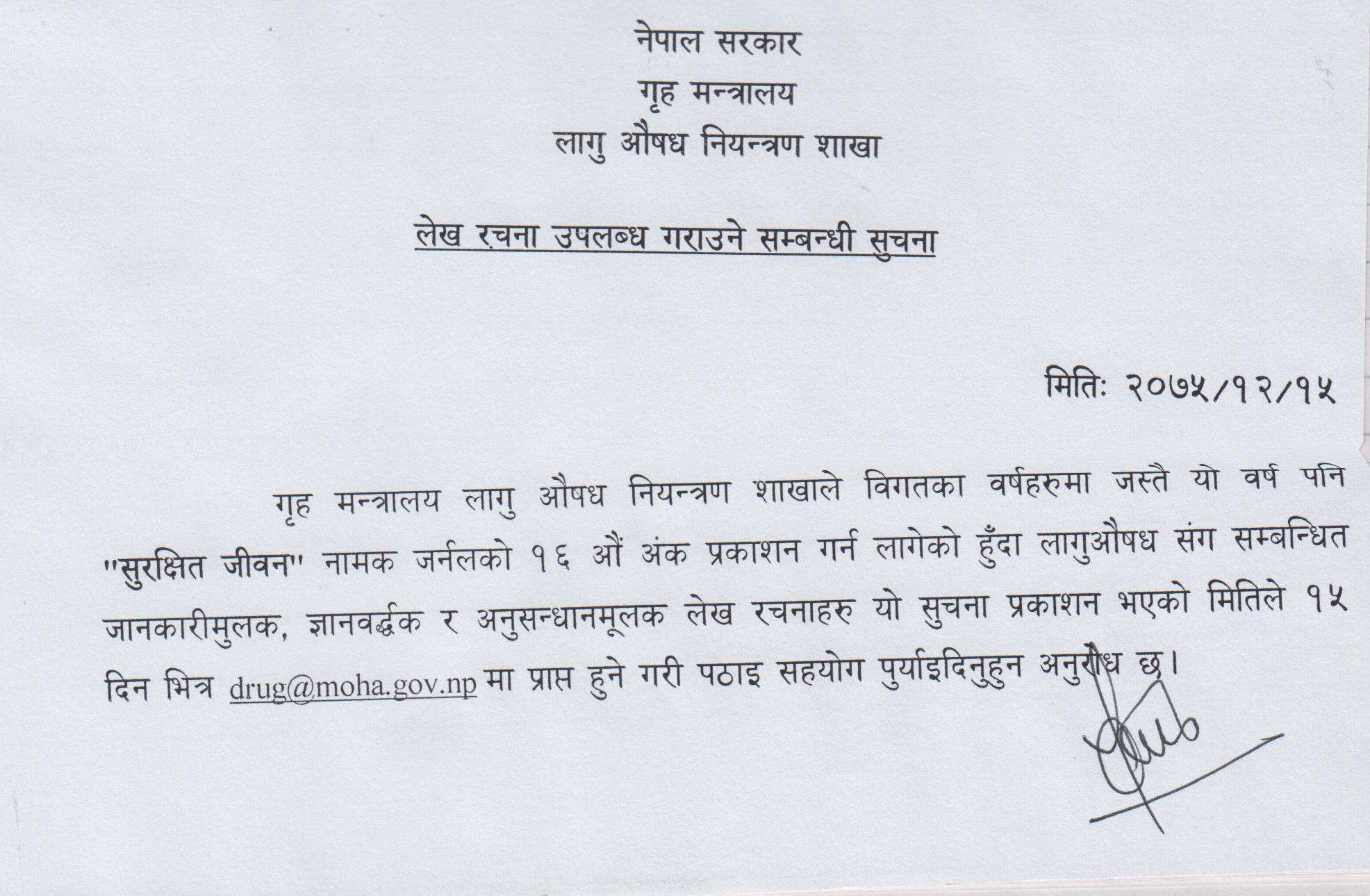 लेख रचना उपलब्ध गराउने सम्बन्धी सूचना ।
