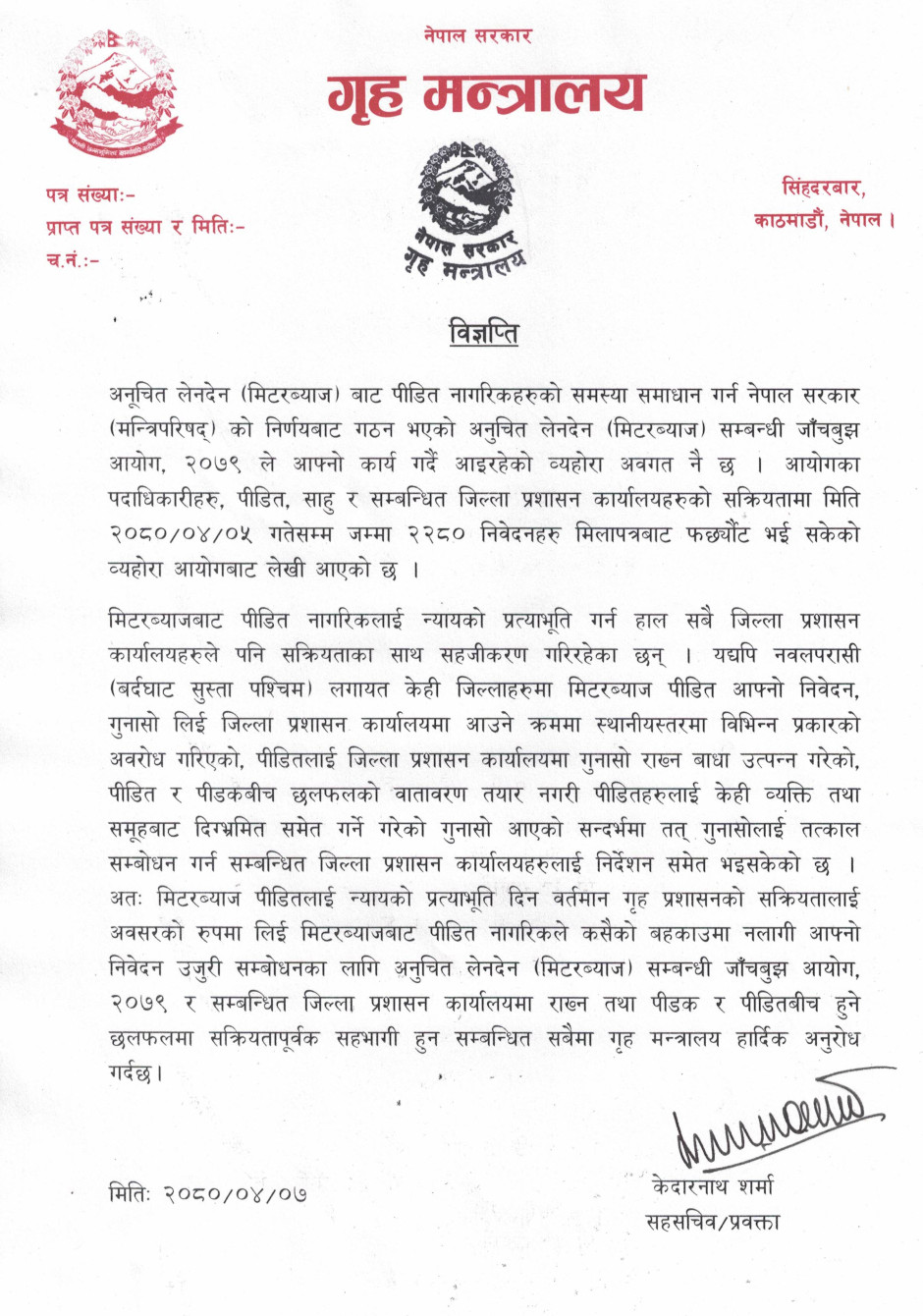 भाद्र २३ र २४ को घटना सम्बन्धी जाँचबुझ आयोग २०८२ | विज्ञप्ति