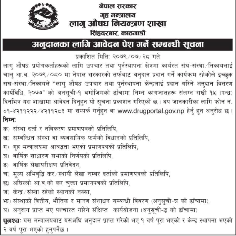 अनुदानको लागि आवेदन पेश गर्ने सम्बन्धी सूचना