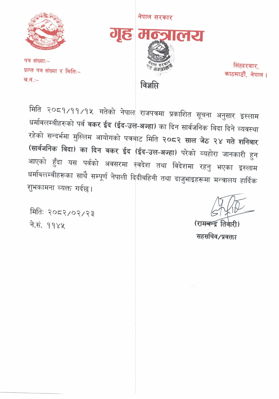 २०८२ सालको सरकारी तथा सार्वजनिक विदा