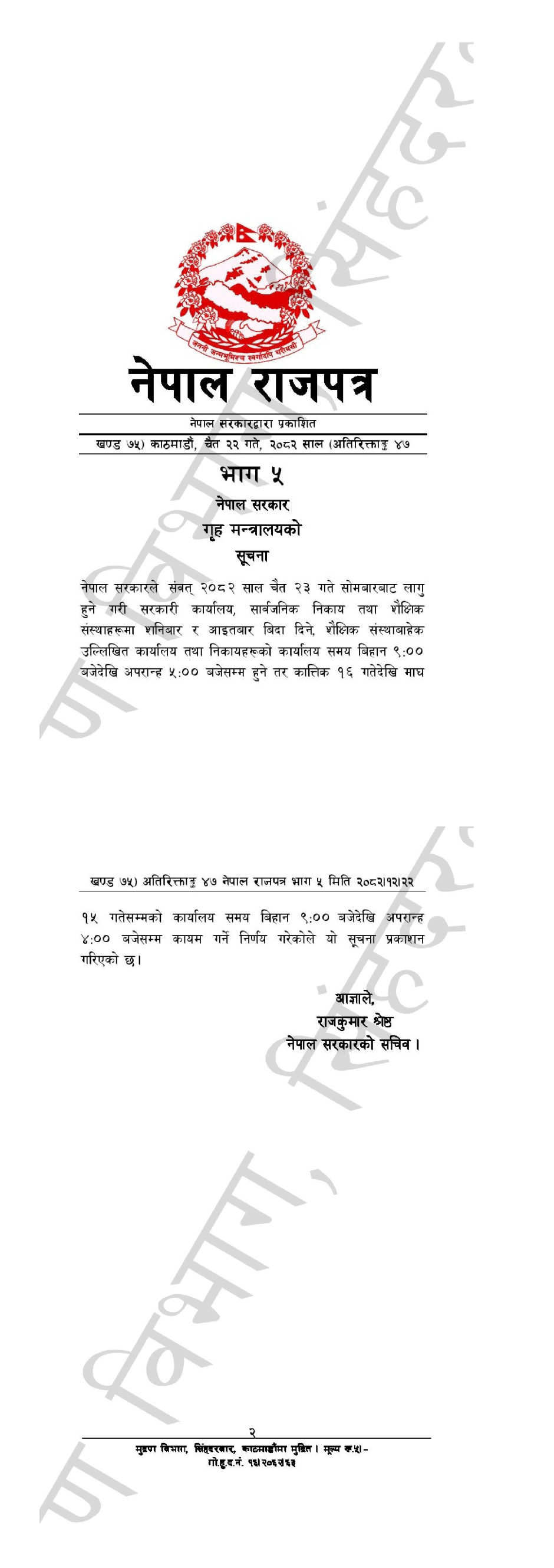 २०८३ सालको सरकारी तथा सार्वजनिक विदा