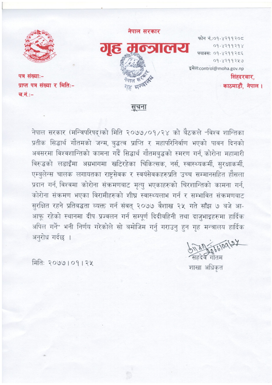 गृह मन्त्रालयसँग सम्बन्धित गुनासोका लागि सम्पर्क नम्बर