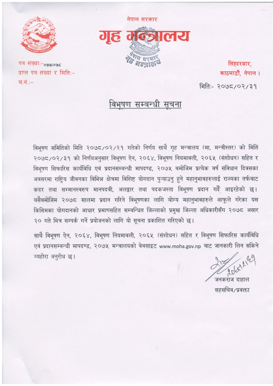 गृह मन्त्रालयसँग सम्बन्धित गुनासोका लागि सम्पर्क नम्बर