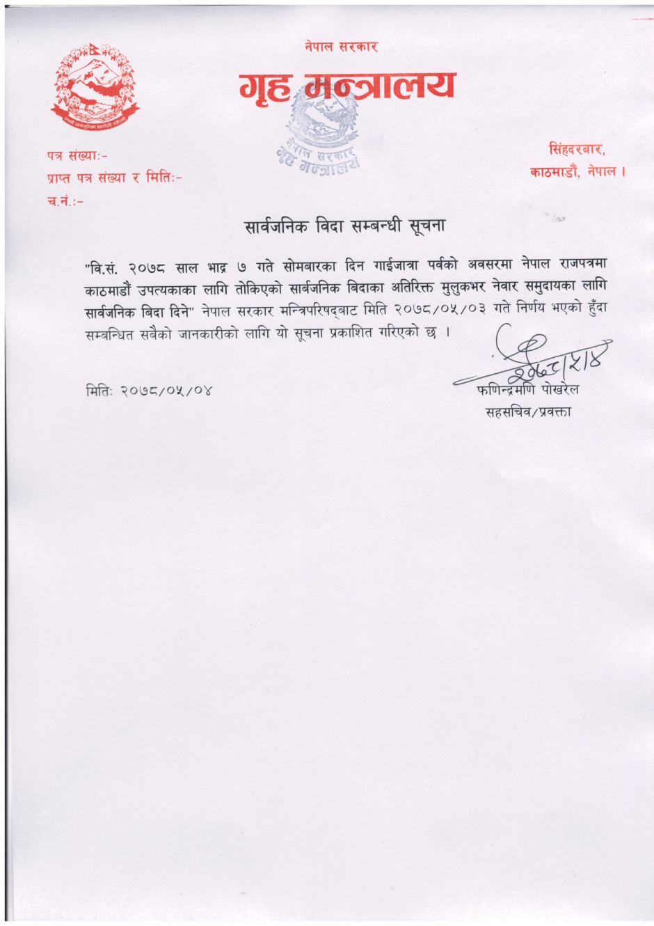 २०८१ सालको सरकारी तथा सार्वजनिक विदा