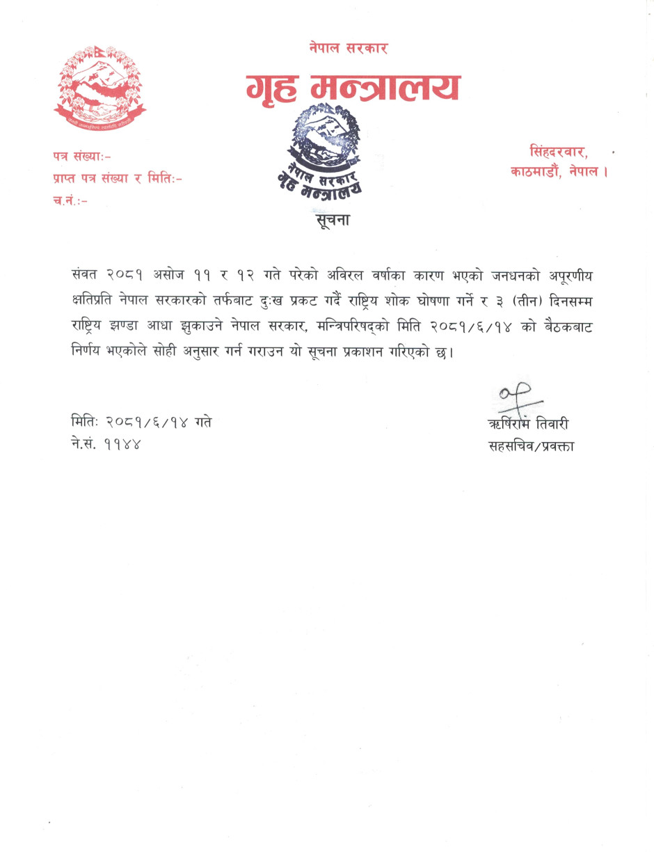 सूचना (राष्ट्रिय शोक सम्बन्धमा)