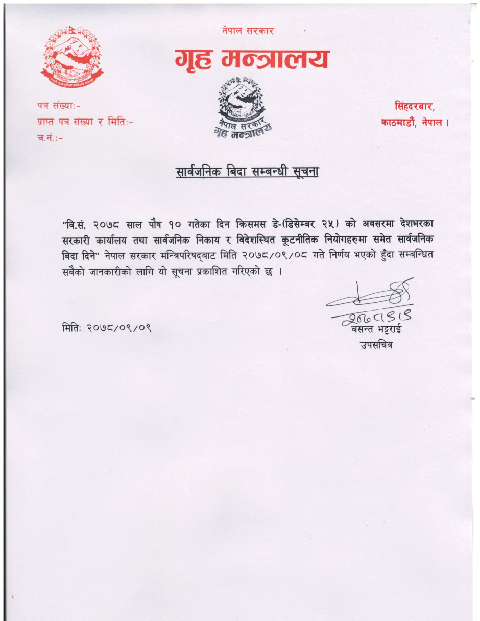 सार्वजनिक विदा सम्बन्धी सूचना