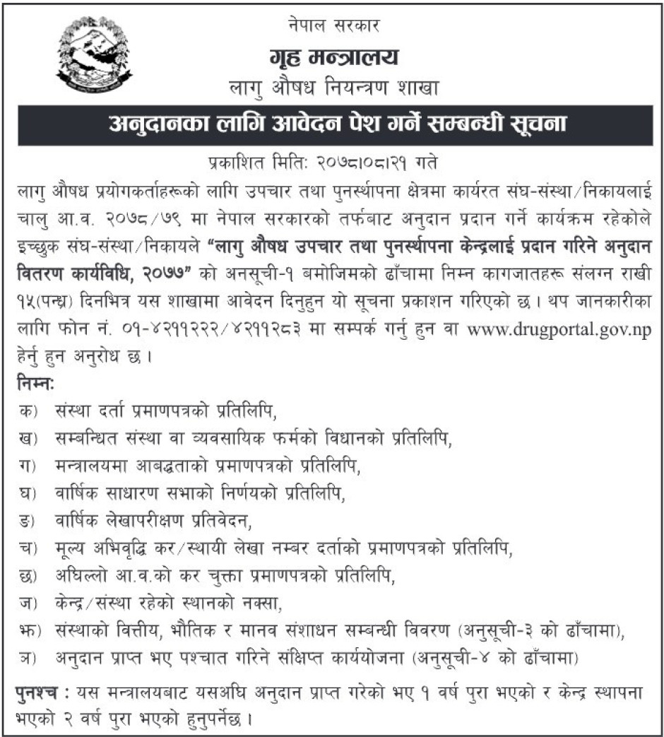 अनुदानका लागि आवेदन पेश गर्ने सम्बन्धी सूचना