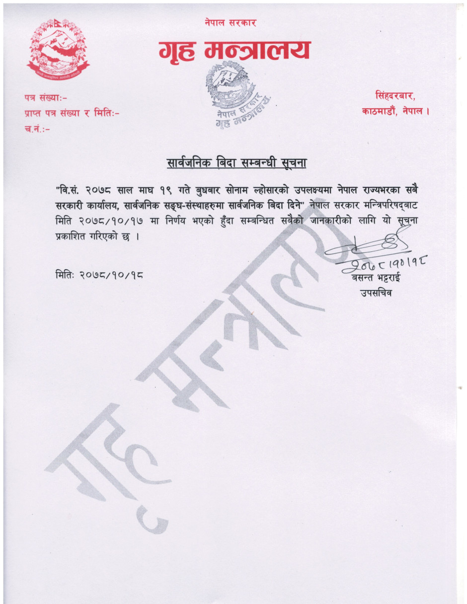 सार्वजनिक विदा सम्बन्धी सूचना