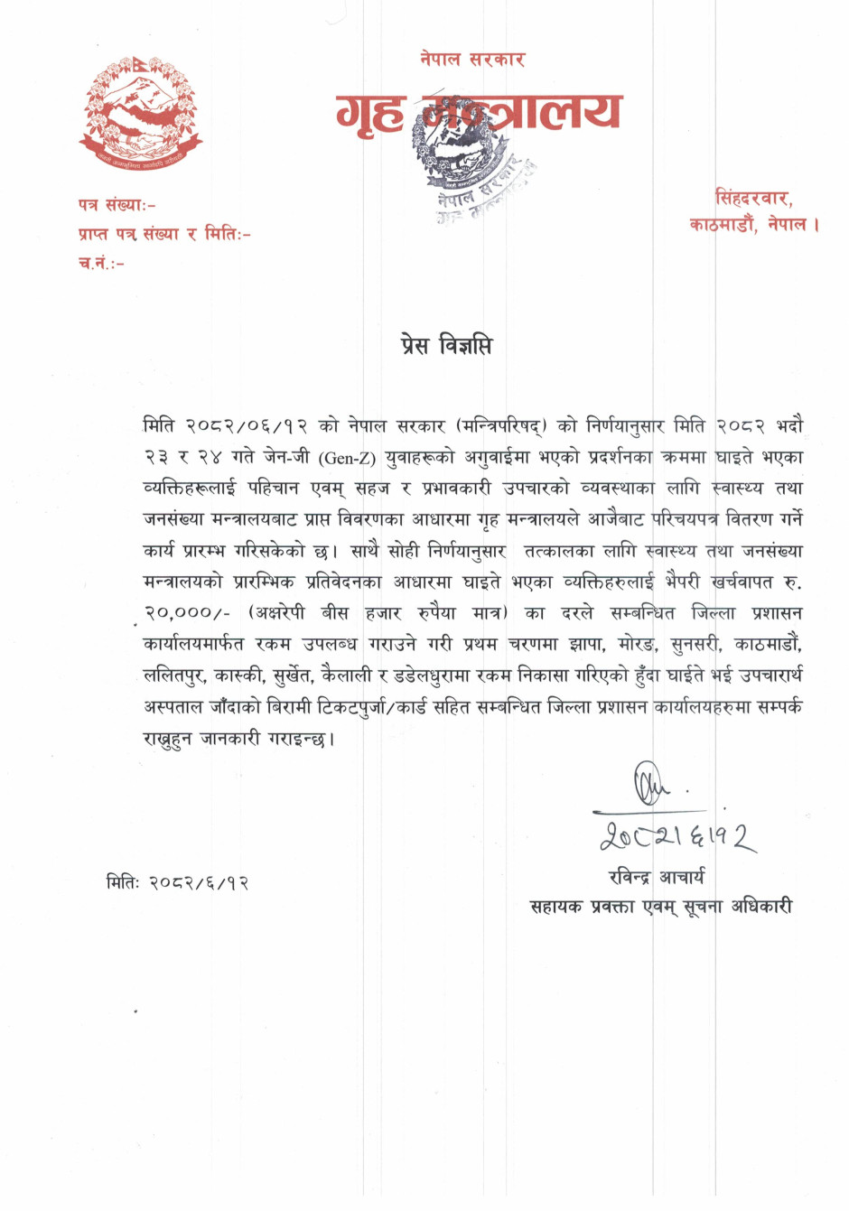 गृह मन्त्रालयसँग सम्बन्धित गुनासोका लागि सम्पर्क नम्बर