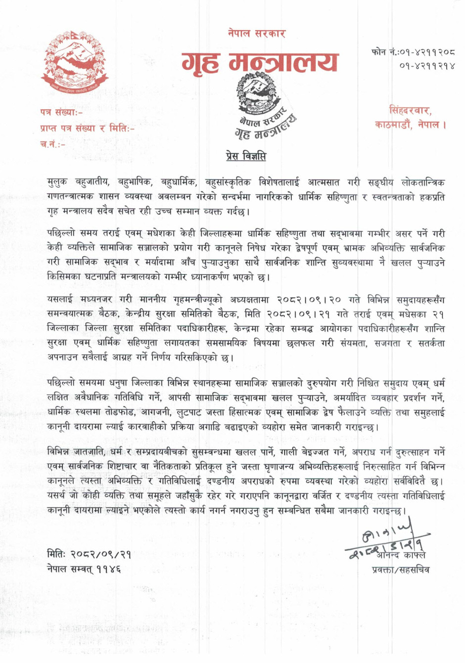 गृह मन्त्रालयसँग सम्बन्धित गुनासोका लागि सम्पर्क नम्बर