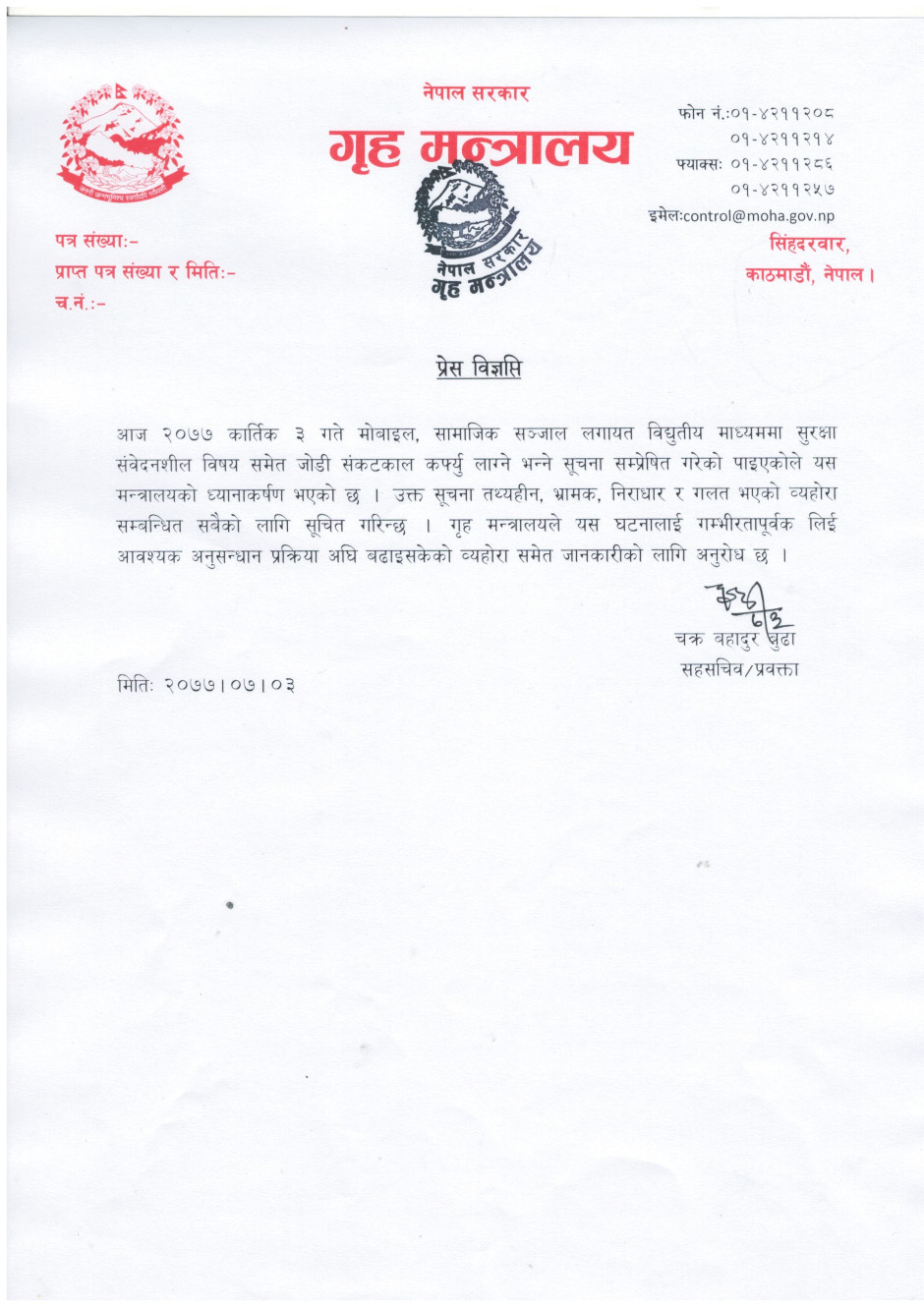 प्रेस बिज्ञप्ति