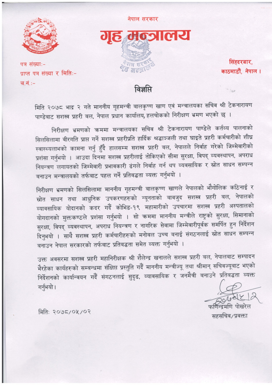 प्रेस बिज्ञप्ति