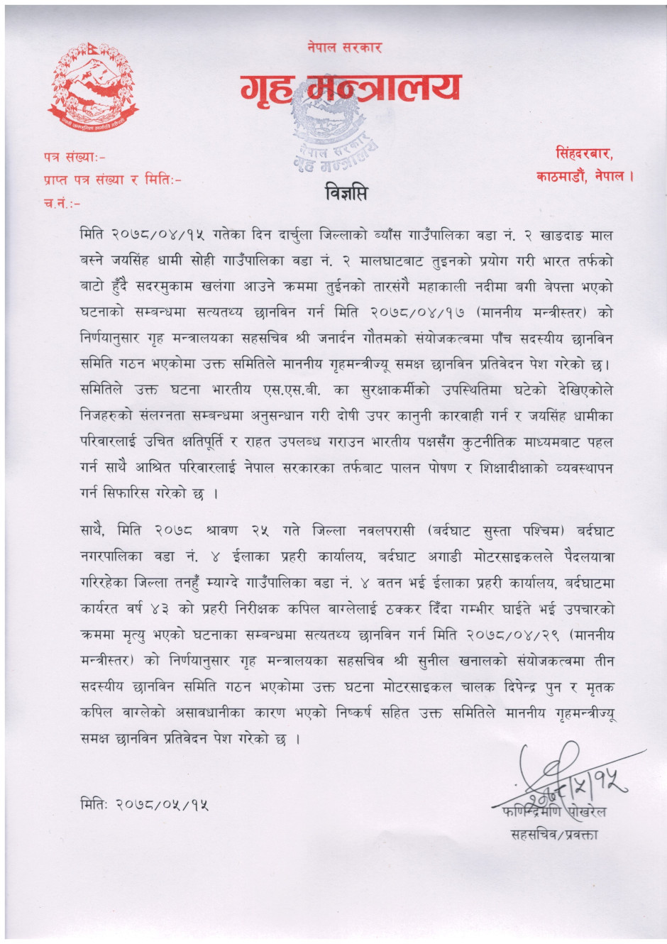 © सर्वाधिकार सुरक्षित गृह मन्त्रालय