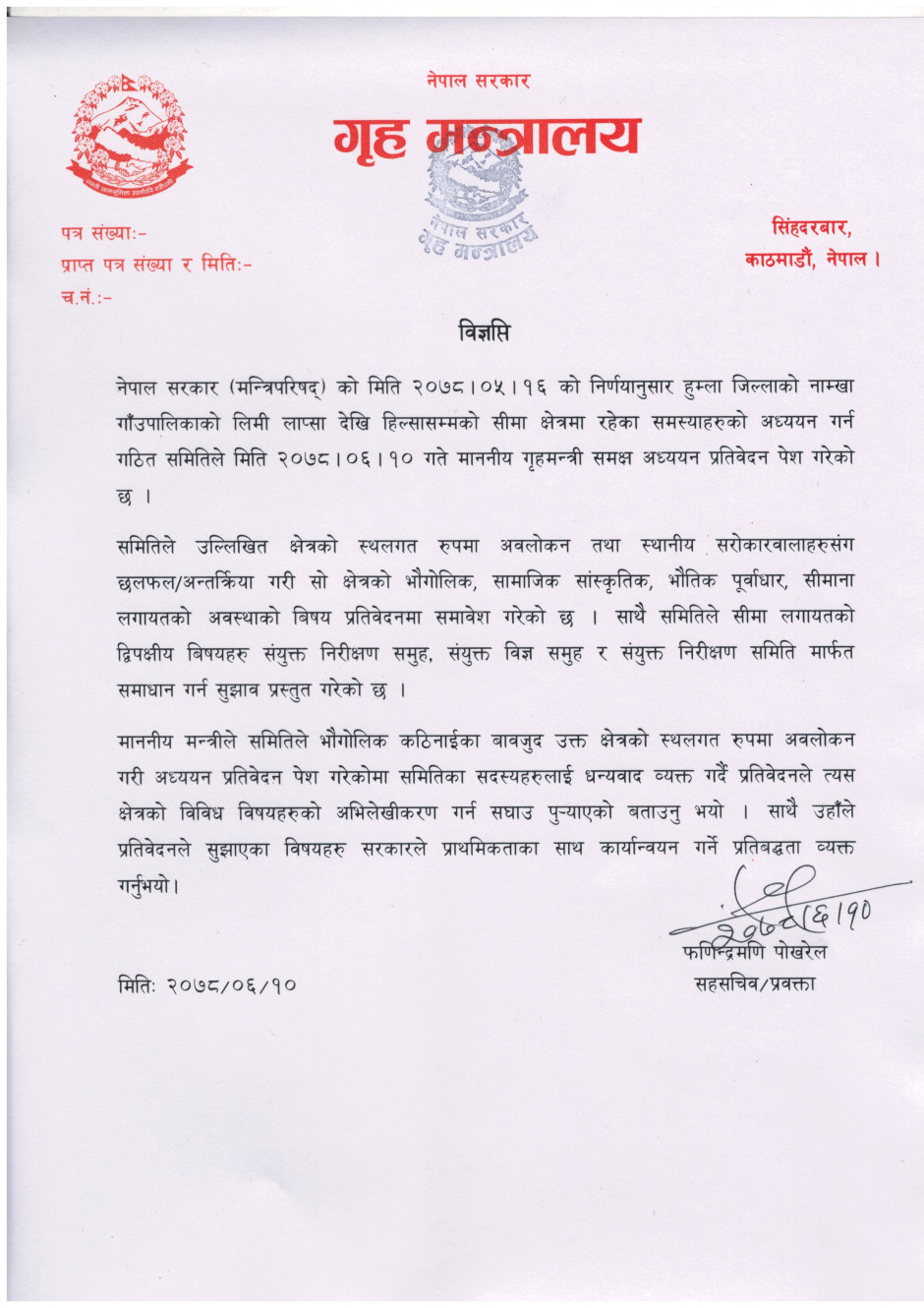 प्रेस बिज्ञप्ति