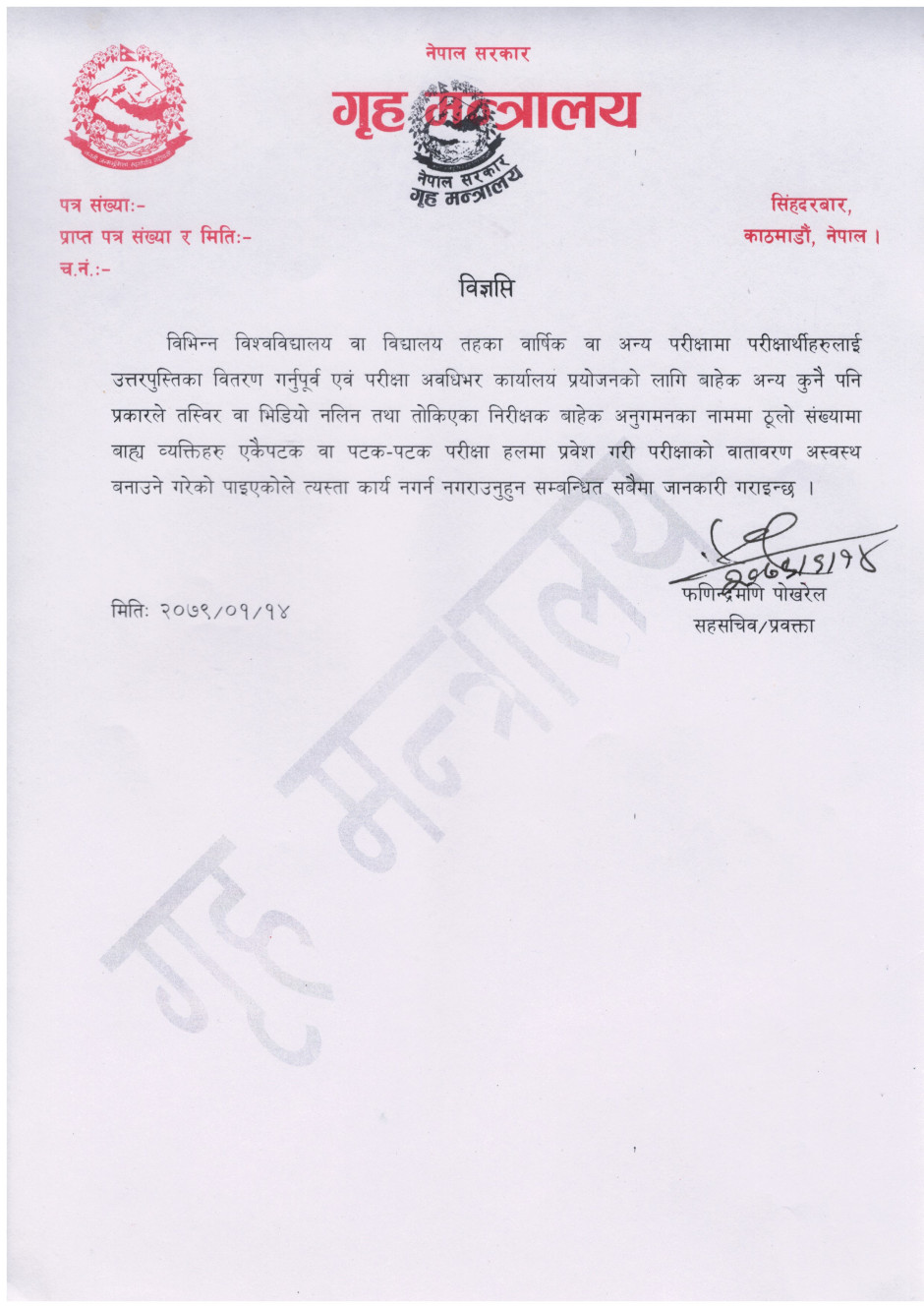 विज्ञप्ति (परीक्षा सञ्चालन सम्बन्धमा)