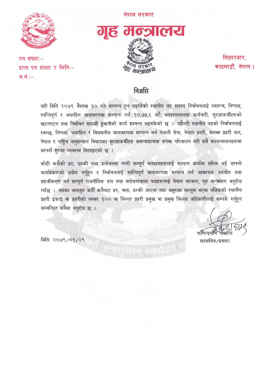 स्थानीय तह निर्वाचन सम्बन्धी प्रेस विज्ञप्ति