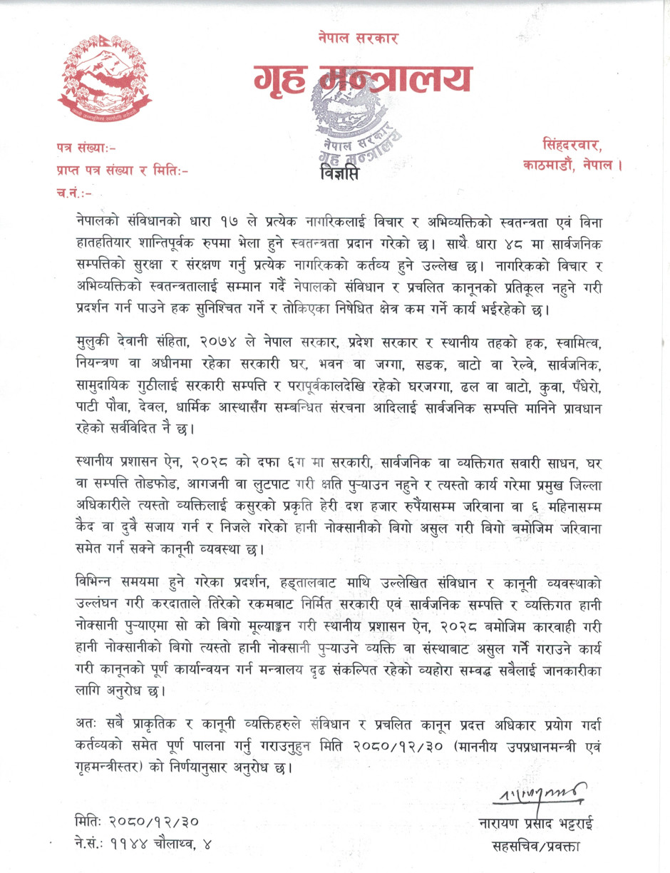 विज्ञप्ति (सरकारी एवं सार्वजनिक सम्पत्तिको संरक्षण सम्बन्धमा)