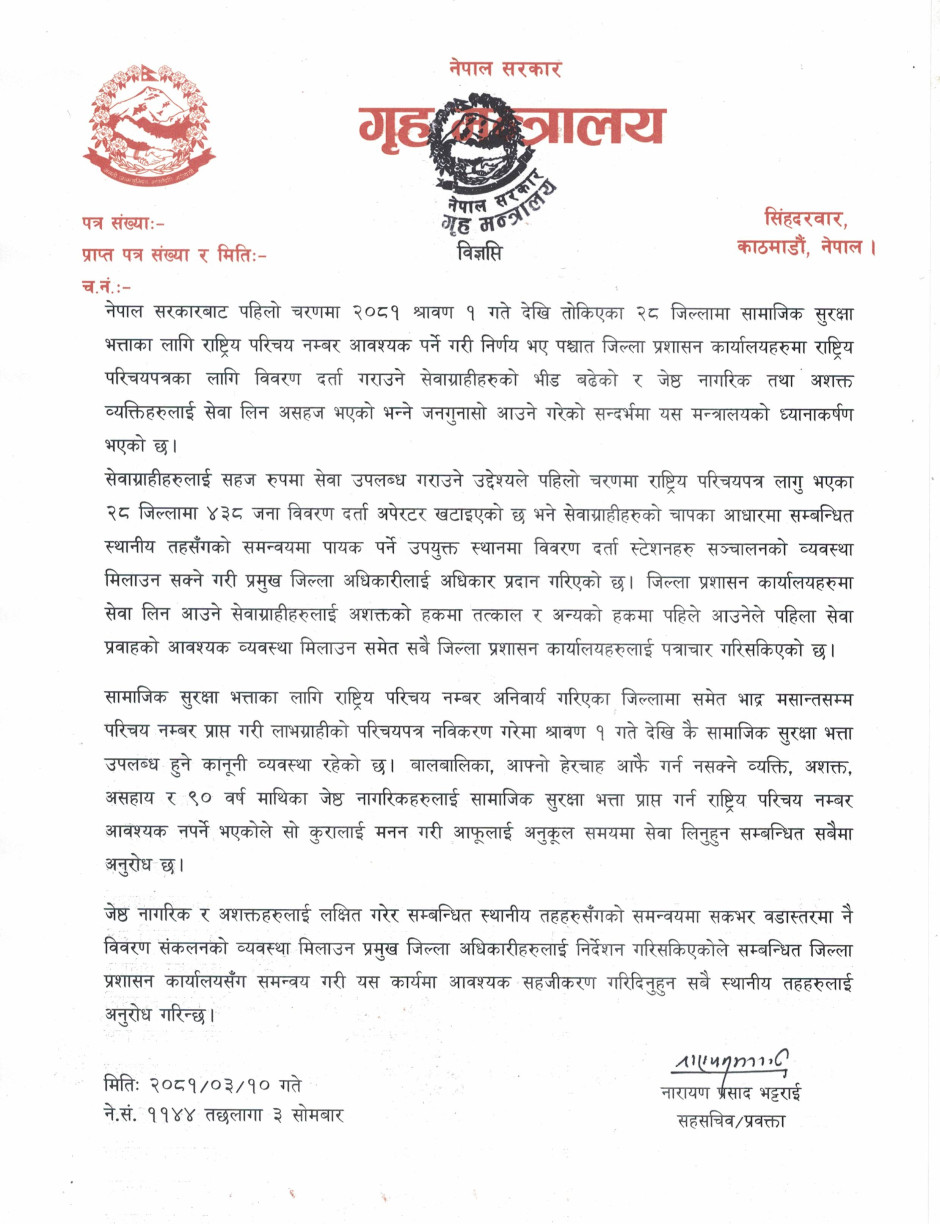 प्रेस विज्ञप्ति (राष्ट्रिय परिचयपत्र सम्बन्धी)