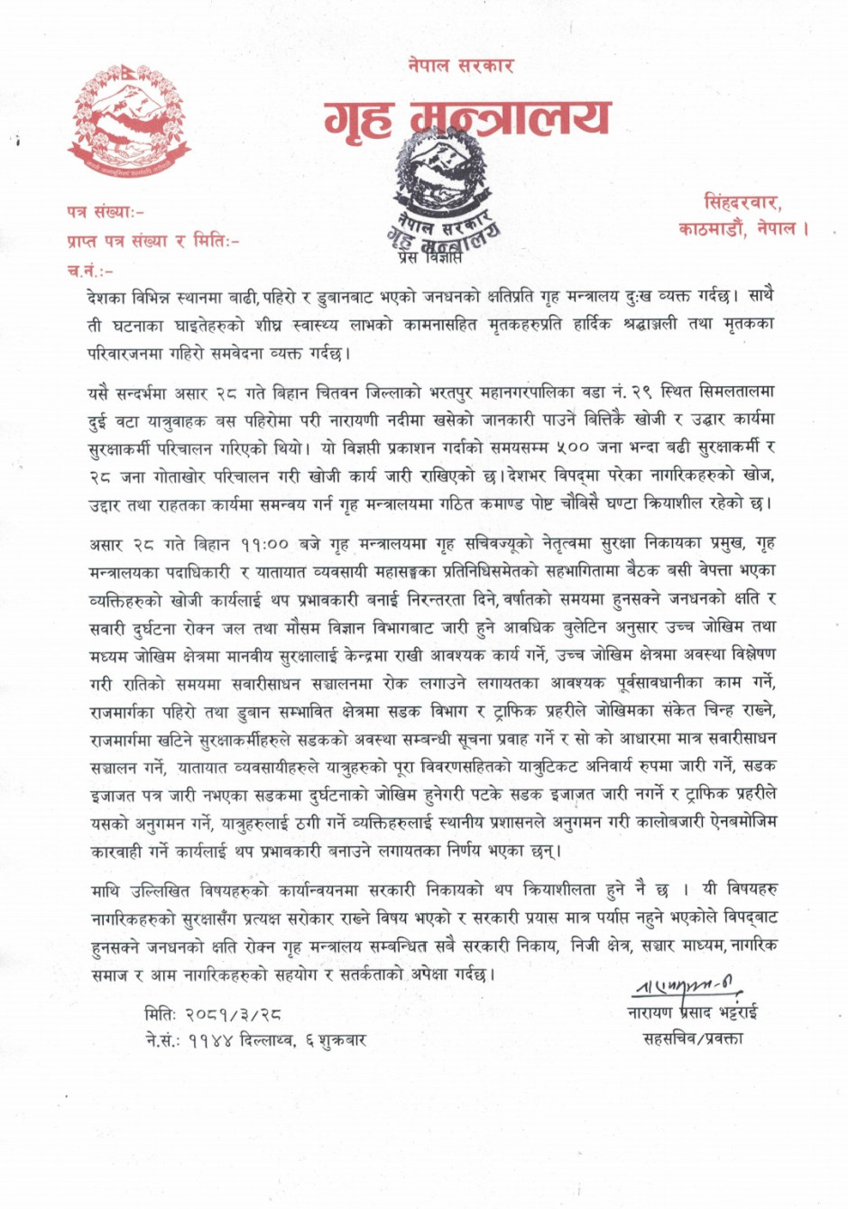 प्रेस विज्ञप्ति (विपद सम्बन्धमा)
