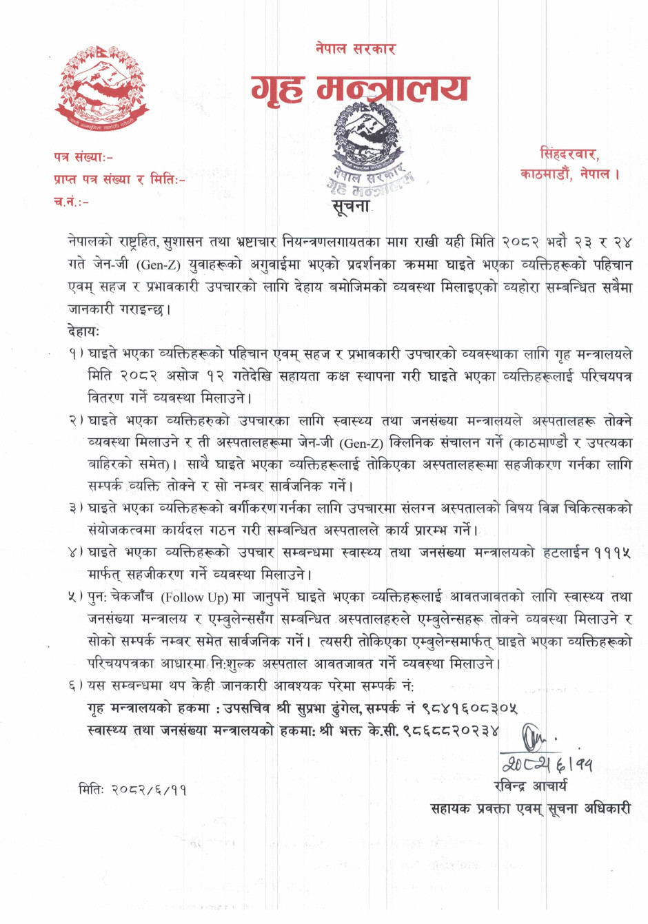 गृह मन्त्रालयसँग सम्बन्धित गुनासोका लागि सम्पर्क नम्बर
