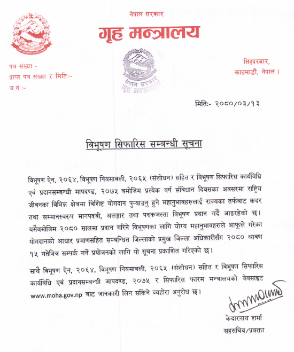 | विभुषण सिफारिस फारम |