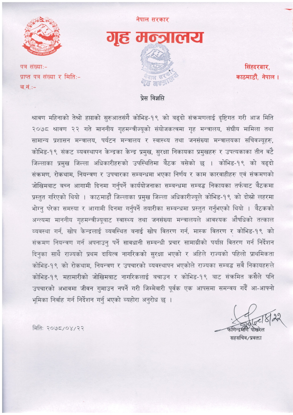 प्रेस बिज्ञप्ति