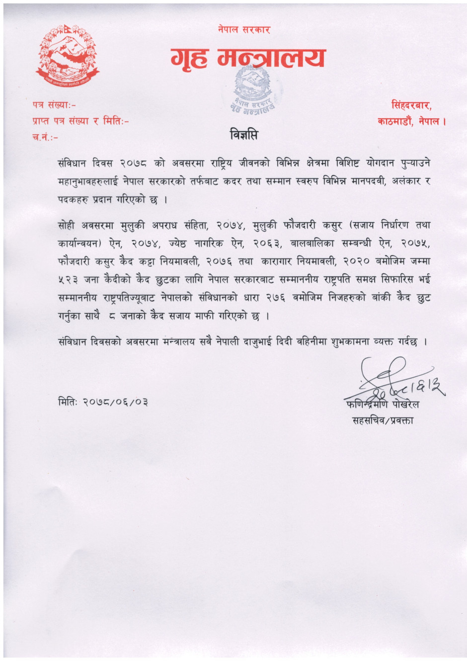 प्रेस बिज्ञप्ति
