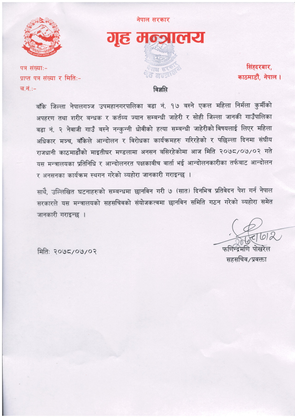 © सर्वाधिकार सुरक्षित गृह मन्त्रालय